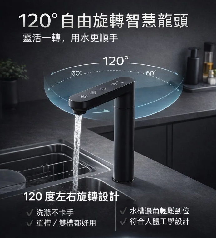 智能龍頭與面板隨時顯示水質與濾芯壽命,並提醒濾心更換。